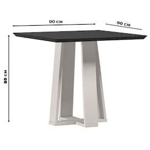 Mesa de Jantar 90x90 cm Valência com Vidro Off White Preto – New Ceval