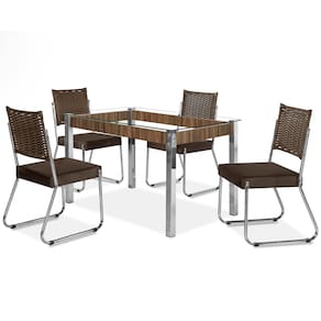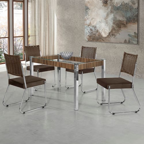 Sua Sala de Jantar Ainda Mais Bonita Com design único e contemporâneo, a Mesa de Jantar Claudia da Aço Nobre com quatro cadeiras, é a escolha perfeita para sua casa, adicionando ao ambiente um toque de elegância e funcionalidade.