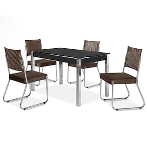 Mesa de Jantar Aço Nobre Cláudia com Tampo Kanon e 4 Cadeiras - Chocolate, Preto e Marrom