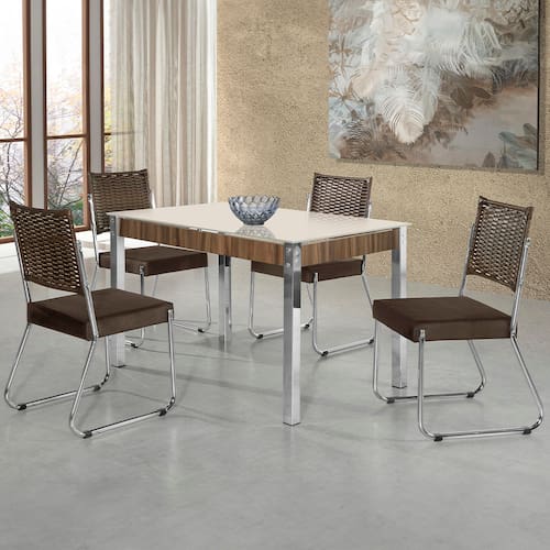 Sua Sala de Jantar Ainda Mais Bonita Com design único e contemporâneo, a Mesa de Jantar Claudia da Aço Nobre com quatro cadeiras, é a escolha perfeita para sua casa, adicionando ao ambiente um toque de elegância e funcionalidade.