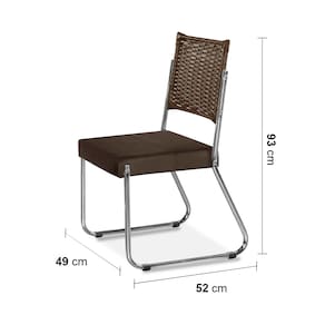 Cadeiras Confortáveis e Funcionais As Cadeiras Claudia da Aço Nobre são a escolha perfeita para quem busca estilo e conforto na sua sala de jantar. Conta com estrutura em aço inoxidável, encosto em Junco e assento em MDF estofado com espuma D28 revestido em Courino Sintético. É equipada por sapatas plásticas antirruído e antirrisco, oferecendo estabilidade sem comprometer o piso. Além disso, ela conta com proteção ultravioleta e capacidade para suportar até 100kg, garantindo maior durabilidade e resistência da peça.