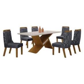 Mesa de Jantar Ágata 180x90 Freijó Off White com 6 Cadeiras MDF Freijó Joli Chumbo Leifer Móveis