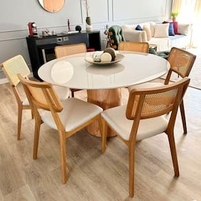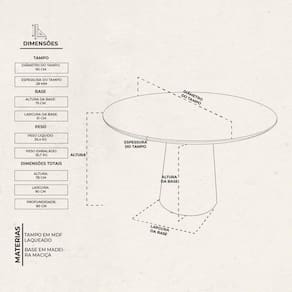 Apresentamos a Mesa de Jantar Araçá, uma peça elegante e versátil que será o ponto central de refeições compartilhadas entre familiares e amigos, seja na sala de jantar, na cozinha ou em ambientes comerciais. Com um design contemporâneo e acabamento de alta qualidade, esta mesa oferece praticidade e estilo para diversos espaços. Acabamento: Laca Acabamento da Base: Verniz Acabamento do Tampo: Laca Ambiente Principal: Sala de Jantar Atóxico: Não codigo_ean: 7909903623541 Complexidade da Montagem: Baixa: pode ser montado por uma pessoa sozinha Cor: Off-White Cor do Produto: Off-White Design da Base: Cilindro Dobrável: Não Escala de Brilho: Semi-Brilho Espessura do Tampo: 28 mm Extensível: Não Itens Inclusos: TAMPO E BASE Linha ou Coleção: Mata Atlântica Manual de Montagem e Instalação: https://product-hub-prd.madeiramadeira.com.br/896011/documents/6798cefd-6463-4c72-b314-9866b67f9ea2ualdemontagemmesaconedocx1.pdf Material da Base: Madeira Maciça Material do Tampo: Vidro/MDF Material Principal: MDF Medida da Base (A x L x P): 75X50X50 Medida da Mesa (A x L x P): 78x90x90 Medida do Tampo (L x C x E): 90X90X0,28 Necessita Montagem: Sim Origem do Produto: Nacional Peso: 34,7 kg Possui Portas: Não Possui prateleira: Não Possui Rodízio: Não Possui Suporte Giratório: Não Possui Vidro: Sim Recomendações de Uso, Manutenção e Limpeza: Limpeza: Utilize pano levemente úmido em seguida pano seco. Nunca use solventes, objetos cortantes ou abrasivos. Sistema de Montagem: Coloque o tampo de vidro em cima da base, centralizado. Parafuse de baixo para cima nos pontos indicados. Suporta Até (kg): 40 kg Tipo de Madeira Maciça da Base: Eucalipto