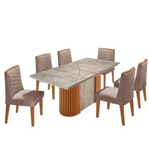 Mesa de Jantar Aspen 180cm Tampo BP Marmorizado Canto Reto 6 Cad Eloise Moderna Mob?lia