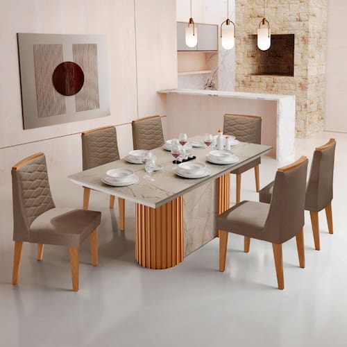 Inspirado nas paisagens elegantes e acolhedoras das montanhas de Aspen, este conjunto ? ideal para transformar sua sala de jantar em um ambiente convidativo, harmonioso e cheio de personalidade.