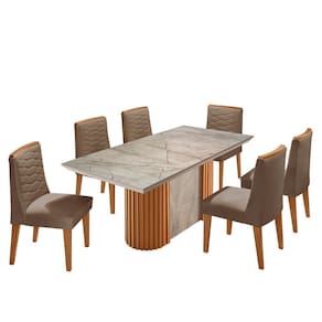 Mesa de Jantar Aspen 180cm Tampo BP Marmorizado Canto Reto 6 Cad Eloise Moderna Mob?lia