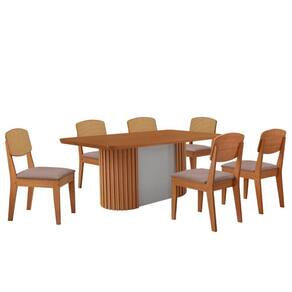 Mesa De Jantar Aspen 180cm Tampo Mdf Laminado Copper Premium Linho Capuccino / /off White Conjunto Mesa Aspen e Cadeira Copper Premium A Mesa Aspen traz um design moderno e imponente, com tampo em MDF e canto copo. Sua base ripada em MDF e o grande destaque da peca, trazendo uma textura cheia de personalidade. A Mesa Aspen transforma qualquer ambiente com sua presenca unica e atual o modelo perfeito para quem busca um design clean e sofisticado, trazendo leveza ao seu ambiente.