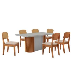 Mesa de Jantar Aspen 180cm Tampo MDF Vidro com 6 Cadeiras Copper Premium Moderna Mobília - Bege Claro