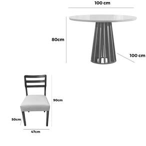 Mesa: MDF/MDP com tampo de vidro; Cadeiras: madeira maciça com espuma de alta densidade e revestimento em tecido linho.Mesa de Jantar Berlim 100cm Redonda com Vidro e 4 Cadeiras Turquia em Linho Madeira Cel Móveis