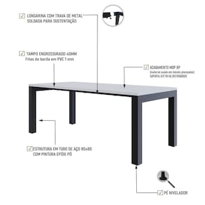 Sobre o ProdutoMesa de Jantar Bronx U 200x90x77cm BRMJ9200U çoDescrição do Produto:A mesa de jantar Bronx BRMJ9200U é a expressão perfeita da fusão entre elegância e robustez, ideal para ambientes modernos e contemporâneos. Com dimensões de 2,00x0,90m, esta peça impressiona pela sua presença marcante. O tampo engrossurado de 40mm, finalizado com fitas de PVC de 01mm, oferece uma superfície resistente e de excelente acabamento. A estrutura em tubos de aço 80x80mm, complementada por longarinas produzidas com tubos 30x50mm, garante estabilidade e durabilidade, enquanto o design minimalista proporciona um toque moderno e sofisticado a qualquer espaç linha City_Scape captura a sofisticação e o estilo das grandes metrópoles, trazendo móveis inspirados em bairros e cidades icônicas. Com design moderno e cosmopolita, cada peça reflete a elegância urbana, conectando ambientes contemporâneos à atmosfera vibrante das cidades ao redor do mundo. Os tampos engrossurados em MDP BP recobertos com fitas de borda em PVC de 01mm, garantem resistência e durabilidade com um acabamento refinado. As estruturas em aço com soldas a laser e suavizadas, possuem acabamento em pintura epóxi que confere solidez e um visual moderno, garantindo a longevidade e a robustez das peç Inclusos:1 Mesa de JantarDimensões dos Produtos:Mesa de Jantar Bronx U 200x90x77cm BRMJ9200U ço: 200 x 90 x 77 cmInformações Logísticas (Comp. X Prof. X Alt.) 208 x 103,5 x 6 cm - Peso: 31,8 94 x 82 x 20 cm - Peso: 10,44 KgPeso Total: 42,24 KgObservações:Não acompanha acessórios decorativos. Imagens meramente ilustrativas.Informações Técnicas / Características:- Cor do Produto: ço- Cor do Predominante: Revestido- Marca: Metalig- Modelo: BRMJ9200U- Linha: City_Scape- Material: Mdp- Material da Estrutura / Pés: Aço- Acabamento: BP- Escala de Brilho: Fosco- Fita de Borda: Pvc - Possui Gavetas: Não - Possui Pés: 2- Pés Niveladores: Sim - Acabamento Estrutura: Epóxi-Pó- Formato: Retangular -Observações: Possui 02 Lomgarinas horizontais de aço.- Suporta Até (kg): 100kg- Comprimento: 200cm- Profundidade: 90cm- Altura: 77cm - Peso Lí.: 39,95Kg- Recomendações de Uso, Manutenção e Limpeza: Para a limpeza, utilize flanela seca ou pano macio levemente umedecido em água. Utilize um pano seco em seguida. Evite com produtos químicos (solventes, thinner, acetona, etc) e não utilize nenhum tipo de esponja de aço.- Necessita de Montagem: Sim / Acompanha Manual de Montagem- Complexidade da Montagem: Média: pode ser montado por mais de uma pessoa e/ou necessite de maior conhecimento para montagem.- Garantia: 01 ano Altura: 77 cm | Comprimento: 200 cm | Marca: Compace | Largura: 90 cm | Modelo: BRMJ9200U | Quantidade máxima de pedido: 1 | Necessita montagem: Sim | Quantidade de volumes: 2 | Profundidade: 90 cm | Produto: Mesa de Jantar | Cômodo indicado: | Cozinhas: Material da estrutura | Aço: Cor | Multicolorido: Coleção | Industrial: Requer Baterias | Não: Certificação Externa | Manual de montagem e kit acessórios: | Sim: Preço de tabela | Fabricante | Compace: do Modelo | 1: da Peça | BRMJ9200U: Cor: Branco TX/