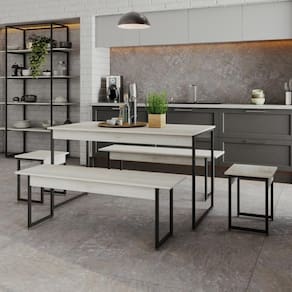 Sobre o ProdutoMesa de Jantar Tub C/02 Bancos e 02 Banquetas Branco Chess / Est.PretaDescrição do Produto:A Mesa de Jantar C/02 Bancos e 02 Banquetas Tub é um produto prático e versátil, que pode ser utilizado em diversos ambientes, como quarto e escritório, na sala, cozinha ou seu depó linha Tub traz móveis contemporâneos com estilo industrial, perfeitos para sua sala, cozinha ou área de lazer. Fabricado com estrutura em tubos de aço com pintura epóxi e MDP Perffect com Microban que inibe a proliferação de fungos e bactérias, além das fitas em PVC, conferindo muito mais qualidade ao seu mó Inclusos:1 Mesa de Jantar C/02 Bancos e 02 BanquetasDimensões dos Produtos:Mesa de Jantar Tub C/02 Bancos e 02 Banquetas Branco Chess / 135 x 70 x 74 cmInformações Logísticas (Comp. X Prof. X Alt.) 146 x 74 x 9 cm - Peso: 35,03 KgPeso Total: 35,03 KgObservações:Não acompanha acessórios decorativos. Imagens meramente ilustrativas.Informações Técnicas / Características:- Cor do Produto: Branco Chess / - Marca: Compace- Modelo: Linha: Tub- Material: Mdp- Material da Estrutura / Pés: Aço- Acabamento: Perffect Acetinado- Escala de Brilho: Fosco- Fita de Borda: Pvc - Possui Gavetas: Não - Possui Pés: 2- Pés Niveladores: Sim - Acabamento Estrutura: Epóxi-Pó Texturizado- Formato: Retangular -Observações: Suporte de peso do Banco: 200kg / Banqueta: 100kg- Suporta Até (kg): 90 kg- Comprimento: 135cm- Profundidade: 70cm- Altura: 74cm - Peso Lí.: 33,6Kg- Recomendações de Uso, Manutenção e Limpeza: Para a limpeza, utilize flanela seca ou pano macio levemente umedecido em água. Utilize um pano seco em seguida. Evite com produtos químicos (solventes, thinner, acetona, etc) e não utilize nenhum tipo de esponja de aço.- Necessita de Montagem: Sim / Acompanha Manual de Montagem- Complexidade da Montagem: Média: pode ser montado por mais de uma pessoa e/ou necessite de maior conhecimento para montagem.- Garantia: 6 meses Material: Mdp | Acabamento: Perffect Acetinado | Escala de Brilho: Fosco | Fita de Borda: Pvc | Material da Estrutura: Aço | Acabamento da Estrutura: Epóxi-Pó Texturizado | Is Fragile: false | do modelo: | Baterias são necessárias?: false | Palavras-chave de Pesquisa: Não se Aplica | da peça: | de caixas: 1 | Componentes incluídos: Manual de montagem e kit acessórios | Fabricante: Compace | Quantidade de itens: 5 | Principais Características do Produto 0: MDP Perffect | Cor: Multicolorido | Certificação de teste externa: Não aplicável | Principais Características do Produto 1: Fitas em PVC | Principais Características do Produto 2: Epóxi-Pó | Peso do item: value=35,03;unit=kilograms | Dimensões do item P x L x A: width#value=135;width#unit=centimeters;depth#unit=centimeters;height#value=74;depth#value=70;height#unit=centimeters Cor: Snow /