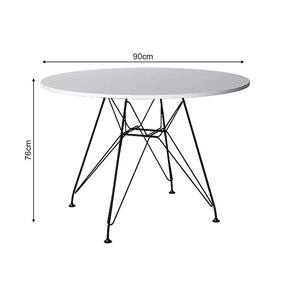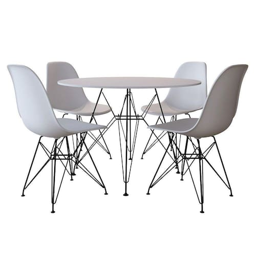 Mesa De Jantar Com 4 Cadeiras Eames Eiffel Tampo Redondo Branco 90cm Base De Ferro PretoO Jogo de Mesa e Cadeiras Eames Eiffel se destaca pelo design moderno e sofisticado. A Cadeira Eames Eiffel é confeccionada em polipropileno, sua base é em ferro, o que confere total resistência e conforto. O Jogo de Mesa e Cadeiras Eames Eiffel da vida ao ambiente além de combinar com todos os tipos e cores de móveis.CARACTERISTICASTipo: ConjuntoModelo: Eiffel RedondoFerro: PretoDIMENSÕES DO PRODUTOCadeiraCor: BrancoAltura: 85cmLargura: 47cmProfundidade: 50cmAssento x Chão: 45cmMesa:Cor: BrancoAltura: 76cmDiâmetro: 90cmObs: Imagens Meramente IlustrativaMesa de Jantar com 4 Cadeiras Eames Eiffel Tampo Redondo Branco 90cm Base de Ferro Preto