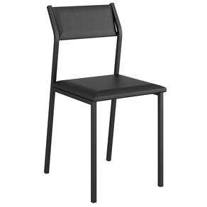 As cadeiras contam com estofado no assento e encosto em tecido napa, confecção em aço pintado, preenchimento em espuma, ponteiras plásticas pretas na base e ponteiras superiores no acabamento da estrutura.