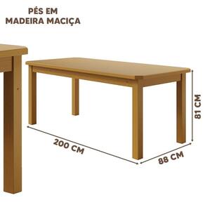 Dimensões da Mesa:Largura 88 cm; Profundidade 200 cm;Altura 81 cm.