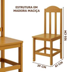 Dimensões da Cadeira:Largura 39 cm; Profundidade 41 cm;Altura 105 cm.