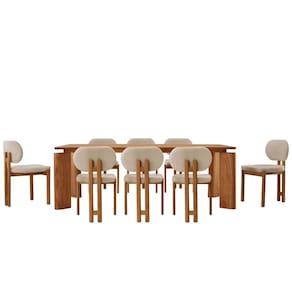 Em meio à rotina acelerada, a Sala de Jantar Tokyo oferece o refúgio perfeito, unindo a grandiosidade natural e o design contemporâneo. Com 8 lugares, sua mesa é uma obra de arte com acabamento em madeira natural e pés robustos que evocam a força das árvores centenárias. O tampo suspenso, com sua leveza, cria um contraste fascinante entre firmeza e delicadeza. As cadeiras, ergonômicas e elegantes, oferecem conforto absoluto, combinando design refinado com materiais nobres. A Sala de Jantar Tokyo não é apenas mobiliário, mas um convite a momentos autênticos e inesquecíveis. Medida da Mesa (A x L x P): 80 x 220 x 110 Peso da Mesa: 93,3 kg Mesa suporta até: 70 kg Acabamento da Cadeira/Banco: Verniz Natural Acabamento da Mesa: Verniz Acompanha Manual de Instalação: Sim Almofada do assento: Fixa Ambiente Principal: Sala de Jantar Cadeira/Banco estofada: Encosto e Assento Estofados Cadeira/Banco suporta até: 140 kg codigo_ean: 7900288142948 Complexidade da Montagem: Média: pode ser montado por mais de uma pessoa e/ou necessite de maior conhecimento para montagem Configuração do Conjunto: Mesa com Cadeiras Cor: Off White / Imbuia Natural Cor do Produto: Off White / Imbuia Natural Cor Flex: Não Cor Secundária: Marrom De Canto (Canto Alemão): Não Enchimento do Assento: Espuma D-26 Escala de Brilho: Semi-Brilho Espessura do Tampo: 40 mm Estrutura do Assento: 15 cm Formato do Tampo: Retangular Informações Complementares: Cadeiras são entregues montadas Itens Inclusos: 1 Mesa de Jantar, 8 Cadeiras Linha ou Coleção: Tokyo Manual de Montagem e Instalação: https://cdn2.madeiramadeira.com.br/atributo/mobilare/2907074-5844-17466250416039.pdf Marca: Mobilare Material da Base da Mesa: MDF Laminado Material da Estrutura da Cadeira: Madeira Material do Tampo: Laminado Material Principal: Madeira Material Principal das Cadeiras/Bancos: Madeira Maciça Medida da Cadeira/Banco (A x L x P): 85 x 52,5 x 50 Medida do Tampo (L x C x E): 220 x 110 x 4 Mesa Extensível: Não Montagem Flex: Não Necessita Montagem: Sim Origem do Produto: Nacional Peso da Cadeira/Banco: 6,8 kg Possui Apoio para Braços: Não Possui Apoio Para os Pés: Não Possui Prateleiras: Não Possui Rodízio: Não Possui Vidro: Não Quantidade de Cadeiras: 8 Quantidade de Lugares: 08 Recomendações de Uso, Manutenção e Limpeza: Limpar com pano seco. Revestimento da Cadeira/Banco: Linho Sistema de Montagem: Parafusos Tipo de Assento: Fixo Tipo de Encosto: Fixo