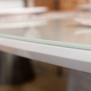 Base com estrutura em Fiberglass com pintura automotiva PU, contra tampo em MDF 18 mm e um tampo de 110 cm em MDF laqueado de 18mm com vidro fixo temperado 4mm.