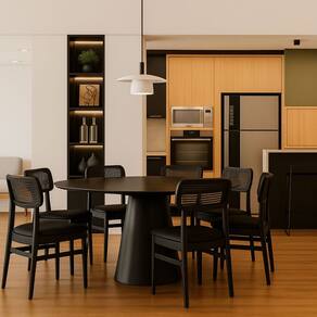 Estrutura em MDF Flexível com acabamento Laqueado Preto, contra tampo em MDF 18 mm e um tampo DE 130x133 cm MDF melamina Laca Preta.