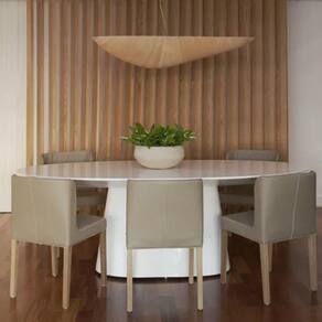 A mesa de Jantar Cone de alto padrão foi criada para possibilitar um design moderno com ousabilidade para a sala de jantar, seu formato em cone mantém o espaçamento para as pernas dando conforto ao usá-la, é requintada se adequando a qualquer tipo de ambiente, clássico ou moderno, seu design é valorizado em decorações residenciais ou comerciais, elas são ideais para ambientes sofisticados.