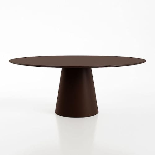 A Mesa de Jantar Cone Laca Marrom Cacau, é uma peça de alto padrão, criada para trazer design moderno e marcante à sala de jantar. Seu formato em cone garante conforto e espaçamento para as pernas, enquanto a tonalidade Marrom acrescenta sofisticação e personalidade ao ambiente.É uma mesa versátil que se adequa tanto a projetos clássicos quanto contemporâneos, valorizando a decoração de ambientes residenciais ou comerciais. Ter uma mesa Cone na cor Cacau é sinônimo de estilo, exclusividade e extremo bom gosto.