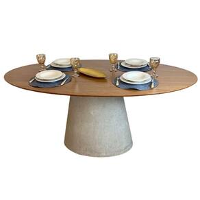 Mesa de Jantar Cone Oval 198x122 cm Tampo Freijó Base Concreto