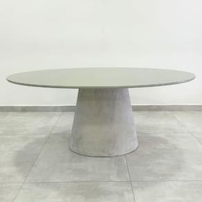 Mesa de Jantar Cone Oval 198x122 cm Tampo Off White + Vidro Base Concreto