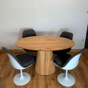 A mesa de Jantar Cone Oval Laminada em Madeira foi criada para possibilitar um design moderno com usabilidade para a sala de jantar, seu formato em cone mantém o espaçamento para as pernas dando conforto ao usá-la, é requintada se adequando a qualquer tipo de ambiente, clássico ou moderno, seu design é valorizado em decorações residenciais ou comerciais, elas são ideais para ambientes sofisticados. Ter um uma mesa Cone em casa ou no escritório é sinal de extremo bom gosto!