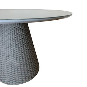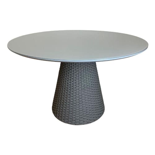 Mesa De Jantar Cone Redonda 110cm Tampo Laqueado Cinza + Vidro Base Corda Náutica Cinza