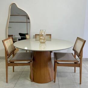 A mesa de Jantar Cone de alto padrão foi criada para possibilitar um design moderno com ousabilidade para a sala de jantar, seu formato em cone mantém o espaçamento para as pernas dando conforto ao usá-la, é requintada se adequando a qualquer tipo de ambiente, clássico ou moderno, seu design é valorizado em decorações residenciais ou comerciais, elas são ideais para ambientes sofisticados.