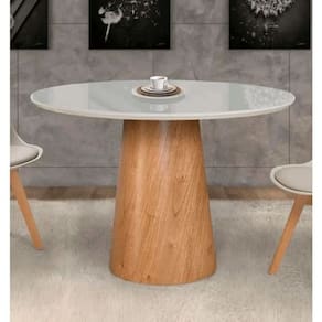 Mesa de Jantar Cone Tampo Laqueado Com Vidro 100cm