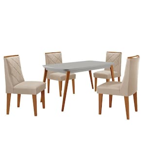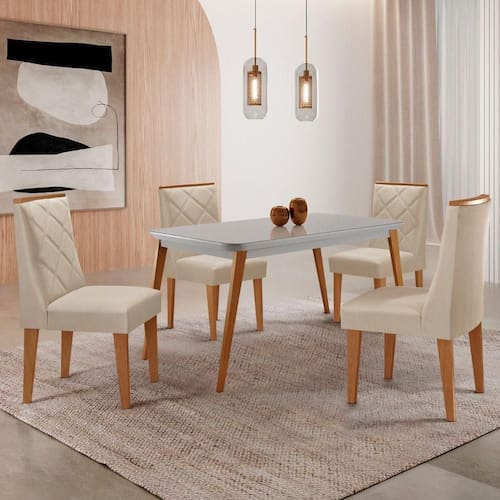 Mesa De Jantar Copper 120cm Mdf Vidro Com 4 Cadeiras Moderna Veludo Creme /off / /serig Off - Bege