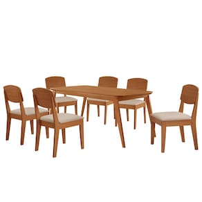 Mesa de Jantar Copper 180cm Tampo Canto Copo MDF com 6 Cadeiras Copper Moderna Mobília - Off White