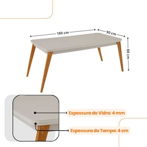 Dimensões Mesa: Altura: 80 cm Largura: 180 cm Profundidade: 90 cm