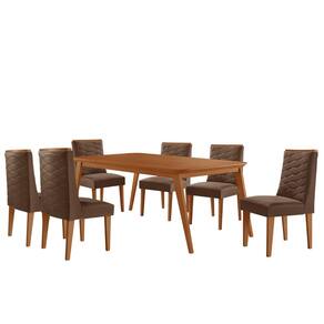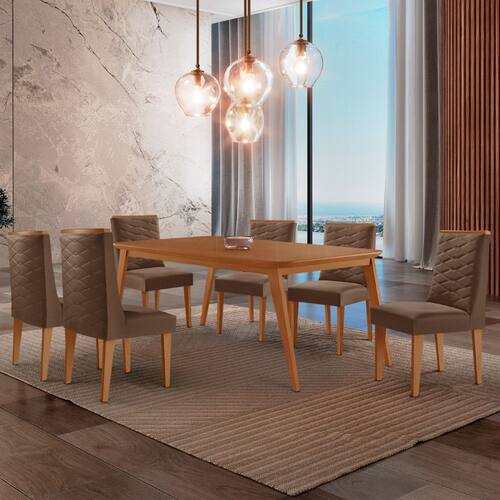 Mesa de Jantar Copper 180cm Tampo Canto MDF com 6 Cadeiras Safira Moderna Mobília - Marrom Escuro