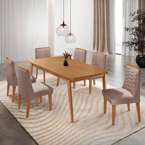 Mesa De Jantar Copper 180cm Tampo Mdf Com 6 Cadeiras Eloise Linho Capuccino// Conjunto Sala de Jantar Mesa Copper e Cadeira Eloise A Mesa Copper e uma peca que traz elegancia e sofisticacao para qualquer ambiente. Sua base em madeira oferece uma estrutura resistente e duravel, enquanto o tampo em MDF e acabamento canto copo garante um visual refinado. Com design sofisticado e estrutura solida, ela complementa o ambiente com um toque natural e acolhedor.