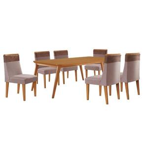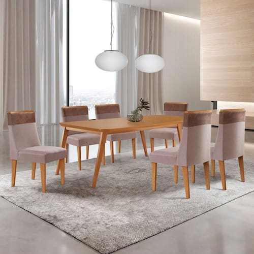Mesa De Jantar Copper 180cm Tampo Mdf Com 6 Cadeiras Moderna Linho Capuccino / Tork / Sala de Jantar Copper com Cadeira Andes A mesa Copper, com base em madeira e tampo em MDF, irradia elegancia e sofisticacao. Seu design refinado, aliado a uma estrutura solida, faz dela uma peca imponente e duravel. Perfeita para espacos que buscam aliar estilo e conforto, essa mesa e a escolha ideal para transformar seu ambiente com classe e personalidade.