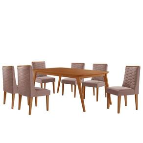 Mesa De Jantar Copper 180cm Tampo Mdf Com 6 Cadeiras Moderna Linho Capuccino// Sala de Jantar Copper com Cadeira Andes A mesa Copper, com base em madeira e tampo em MDF, irradia elegancia e sofisticacao. Seu design refinado, aliado a uma estrutura solida, faz dela uma peca imponente e duravel. Perfeita para espacos que buscam aliar estilo e conforto, essa mesa e a escolha ideal para transformar seu ambiente com classe e personalidade.