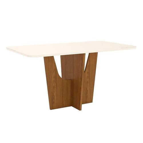 Mesa de Jantar Danielly 160 cm Tampo Arredondado com Vidro Nature Off White – Henn