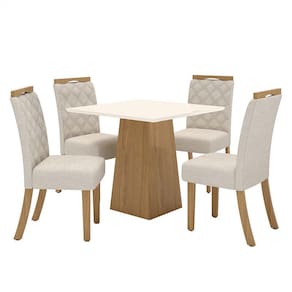 Mesa de Jantar Dora 90cm Canto Reto sem Vidro Nature Off White com 4 Cadeiras Bella Linho - Henn