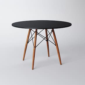 Mesa de Jantar Eames Eiffel 80cm Tampo Redondo Preto Base de Madeira
