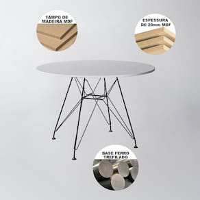Mesa De Jantar Eames Redonda 90cm Branca Com Ferro PretoA Mesa Eiffel é a escolha ideal para deixar sua casa muito mais bonita e renovada. Essa mesa tem em sua estrutura materiais de altíssima qualidade, que proporciona muito mais resistência, mesmo com o passar dos anos. Ela tem formato redondo e possui espaço para 4 lugares, o que é ideal para um jantar em família. A mesa é versátil e combina com vários tipos de decoração, o que dá mais praticidade em casa.Tipo: MesaModelo: EiffelCor: Tampo Redondo BrancoDimensões do Produto- Altura: 76cm- Diâmetro:Características- Base: Madeira com ferro entrelaçado preto / branco / cobre- Tampo de Vidro / Madeira (mdp) com espessura de 25mm- Necessita Montagem? Parcialmente (Produto Entregue Montado Parcialmente)Mesa de Jantar Eames Redonda 90cm Branca com Ferro Preto - Up Home