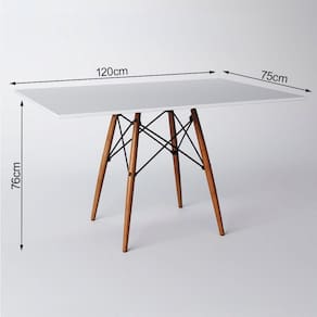 Mesa De Jantar Eiffel Retangular Tampo De Madeira 120x75cm BrancoA sua cozinha ou sala de jantar ficará completa com essa linda Mesa! Contendo um design de móveis moderno, elegante e com uma ousada combinação de materiais, esse é um produto que certamente esbanja estilo, elegância e muito requinte.Especificações técnicas:Modelo: Eiffel WoodTipo: RetangularCor do tampo: BrancoCor da base dos pés: Wood (Madeira)Material do tampo: Madeira Material dos pés: MadeiraDimensões: Altura: 76 cm // Largura: 120 cm // Profundidade: 75 cm**** NÃO ACOMPANHA CADEIRASMesa de Jantar Eiffel Retangular Tampo de Madeira 120x75cm Branco