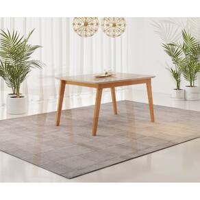 Pés em madeira maciça com perfis em MDF Tampo em MDF de 25mm com cantos arredondados e acabamento PU nas bordas Tampo OFF com vidro serigrafado e temperado de 4 mm