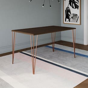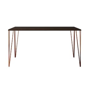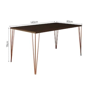 Mesa De Jantar Elen 140x80cm Tampo Amêndoa Com Base Cobre - Cor: Marrom Mesa De Jantar Elen 140x80cm Tampo Amêndoa Com Base CobreA sua cozinha ou sala de jantar só está completa com uma boa mesa para realizar as grandes refeições em família. E se você busca um móvel de qualidade e com combinação de cores, o modelo Elen é para você! De tampo retangular e estrutura em ferro, ela acomoda os seus convidados enquanto deixa o momento mais intimista. Mas não é só a sua rotina que ganha uma bela aliada, ela também complementa a decoração com sofisticação, além de ser harmonizável com cadeiras da mesma cor ou coloridas, seja para garantir um visual monocromático ou voltado para algo arrojado. Ah, a peça não acompanha cadeiras e você deve adquiri-las separadamente para deixar o completo.Informações importantes:- Os objetos que ambientam as fotos não acompanham o produto.- Verifique as dimensões do produto e certifique-se que o percurso que ele fará até o local de permite sua passagem.- Favor verificar se os pés estão dentro do forro inferior do produto.- Fique atento, nossas cores podem sofrer alterações dependendo do seu monitor.Especificações:Cor: AmêndoaBase: CobreInstruções/Cuidados:Limpar com Pano Levemente UmedecidoConteúdo da Embalagem 1 Mesa (Cadeiras não acompanham o produto) - Entregue em: 2 VolumesModelo ElenMaterial Estrutura em Ferro; Tampo em MDF 20 mm; Pés Fixos em Ferro; Acabamento em Semi-BrilhoDescrição do Tamanho - Altura: 76 cm - Largura: 140 cm - Profundidade: 80 cmFormato RetangularTipo de pé FixoMesa de Jantar Elen 140x80cm Tampo AmÃndoa com Base Cobre