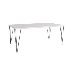 Mesa De Jantar Elen Retangular Tampo De Madeira 140x80cm BrancoA sua cozinha ou sala de jantar só está completa com uma boa mesa para realizar as grandes as refeições em família. E se você busca um móvel de qualidade e com uma clássica combinação de cores, o modelo Elen é para você! De tampo retangular e estrutura em ferro, ela acomoda os seus convidados enquanto deixa o momento mais intimista. Mas não é só a sua rotina que ganha uma bela aliada: ela também complementa a decoração com sofisticação, além de ser harmonizável com cadeiras da mesma cor ou coloridas, seja para garantir um visual monocromático ou voltado para algo arrojado. Ah, a peça não acompanha cadeiras e você deve adquiri-las separadamente para deixar o uso completo. Informações importantes:- Os objetos que ambientam as fotos não acompanham o produto.- Verifique as dimensões do produto e certifique-se que o percurso que ele fará até o local de uso permite sua passagem.- Favor verificar se os pés estão dentro do forro inferior do produto.- Fique atento, nossas cores podem sofrer alterações dependendo do seu monitor. Especicações:Cor BrancoInstruções/Cuidados Limpar com Pano Levemente UmedecidoConteúdo da Embalagem 1 Mesa (Cadeiras não acompanham o produto) - Entregue em: 2 VolumesModelo ElenMaterial Estrutura em Ferro; Tampo em MDF 20 mm; Pés Fixos em Ferro; Acabamento em Semi-BrilhoDescrição do Tamanho Altura: 76 cm Largura: 140 cm Profundidade: 80 cm Formato RetangularTipo de pé FixoMesa de Jantar Elen Retangular Tampo de Madeira 140x80cm Branco