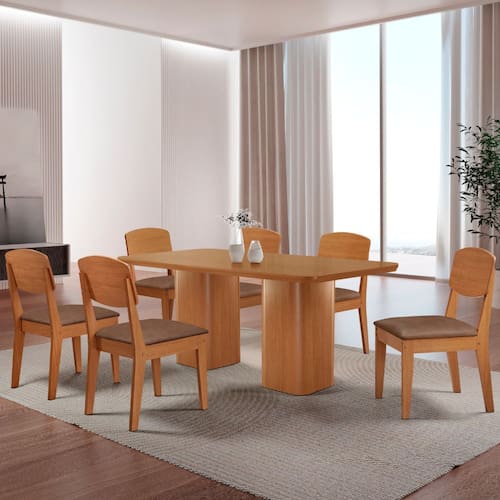 Mesa de Jantar Eloise 180cm Tampo MDF Laminado com 6 Cadeiras Copper Moderna Mobília - Marrom
