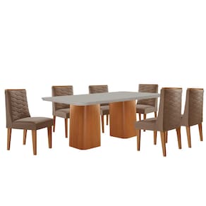 Mesa de Jantar Eloise 180cm Tampo MDF Vidro com 6 Cadeiras Safira - Bege Médio