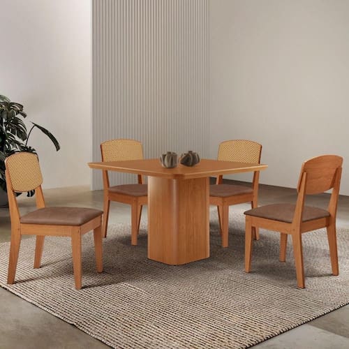 Mesa De Jantar Eloise 90cm Tampo Mdf 4 Cadeiras Moderna Tork/