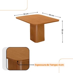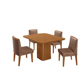 Mesa de Jantar Eloise 90cm Tampo MDF Laminado Canto Copo com 4 Cadeiras Eloise Moderna Mobília - Marrom