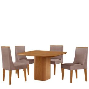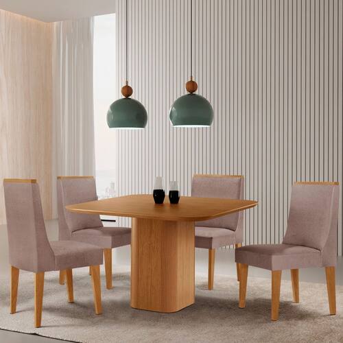 Mesa de Jantar Eloise 90cm Tampo MDF Laminado com 4 Cadeiras Lisboa Moderna Mobilia - Rosê